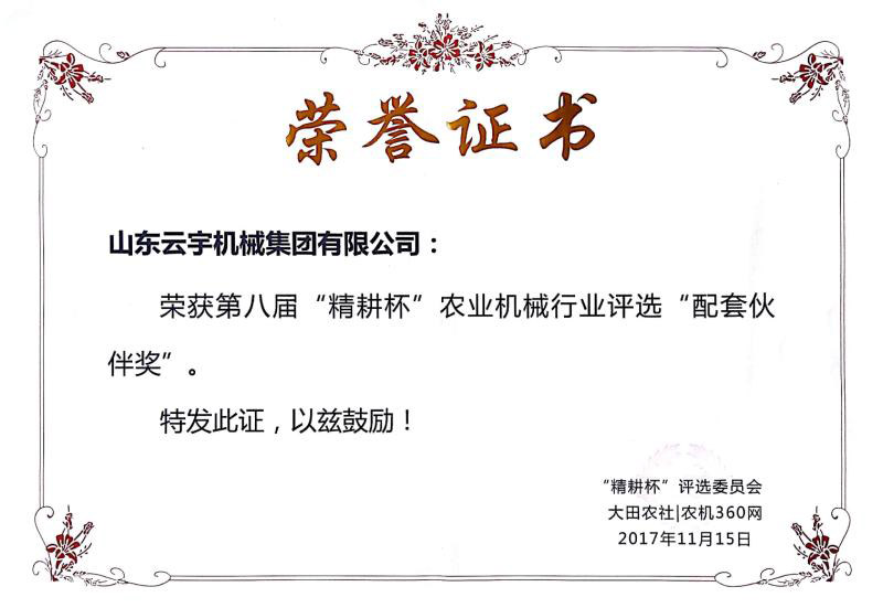 The eighth "precision Cup" agricultural machinery industry "matching Partner Award" certificate