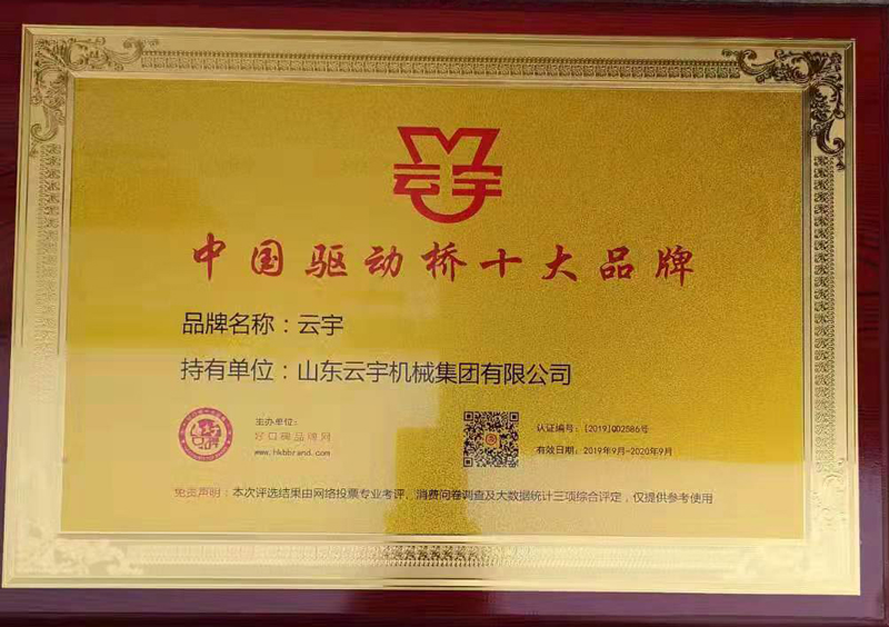 山東云宇機(jī)械集團(tuán)有限公司入選“中國驅(qū)動(dòng)橋十大品牌”--云宇 詳細(xì)>>